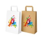 Buste con maniglia piatta e logo a colori su fronte e retro.
