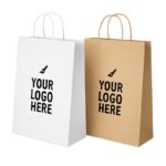 - Buste di carta 100gr con maniglia cordino;